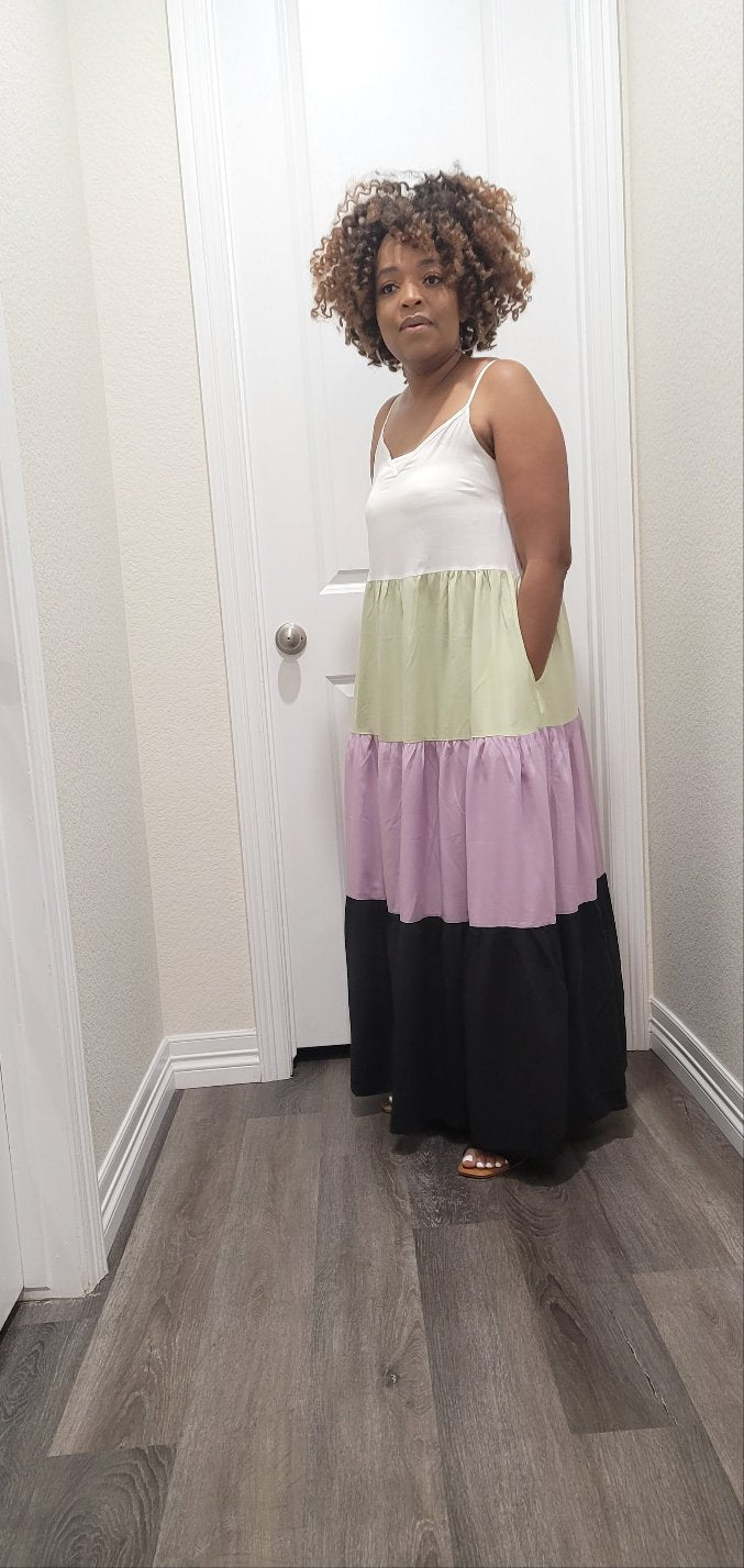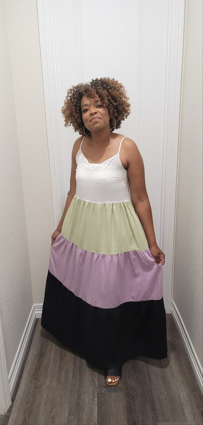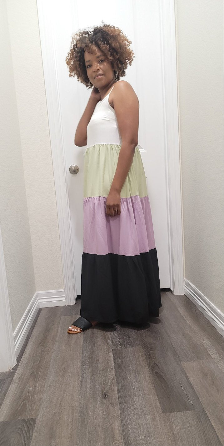 Multi color block spaghetti strep maxi