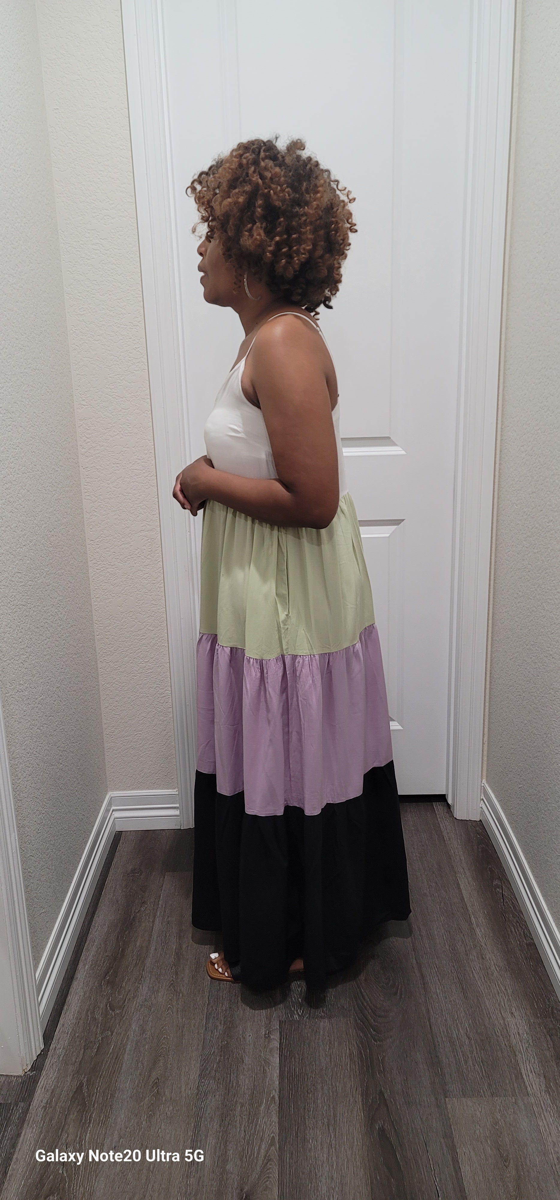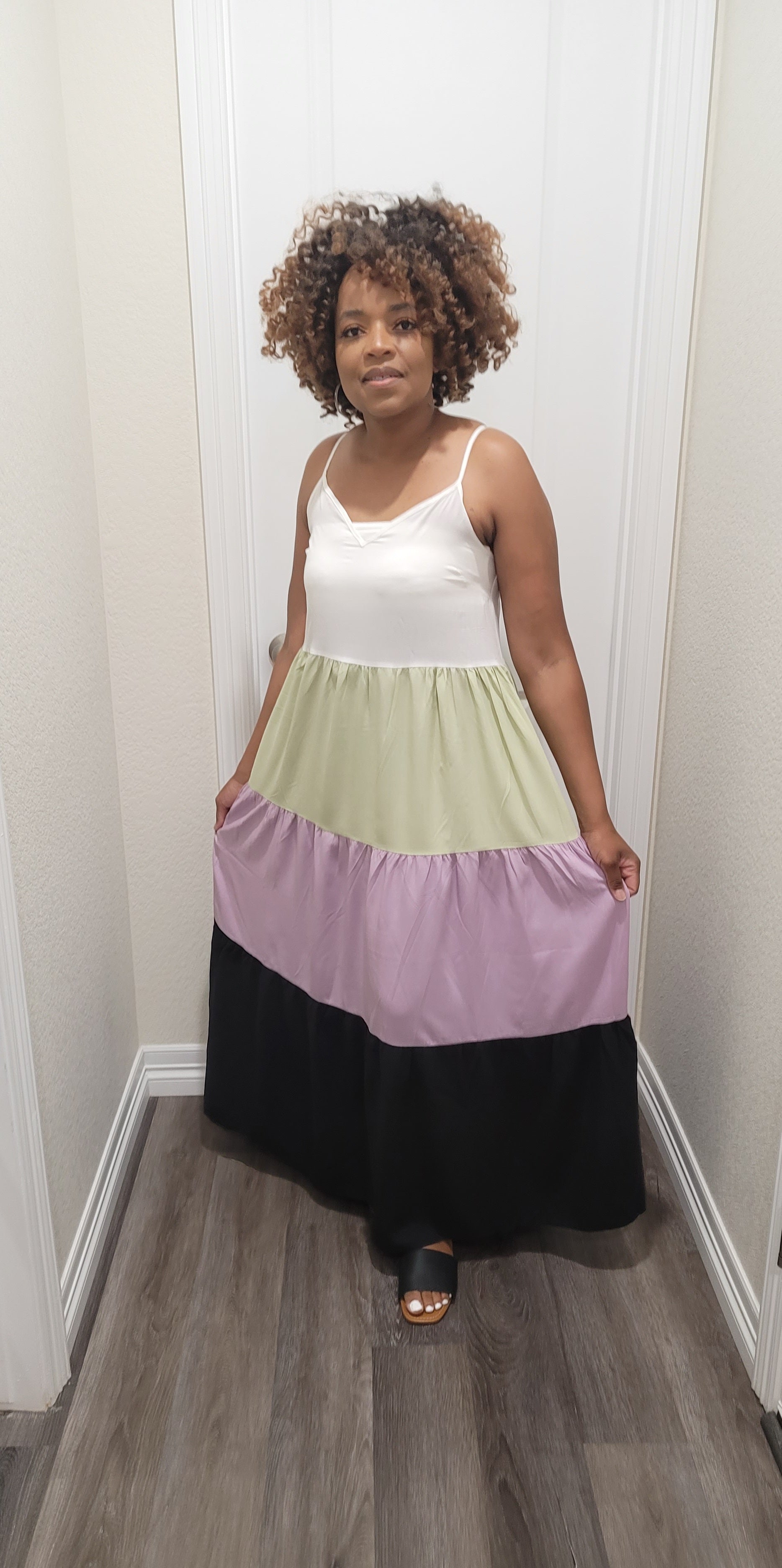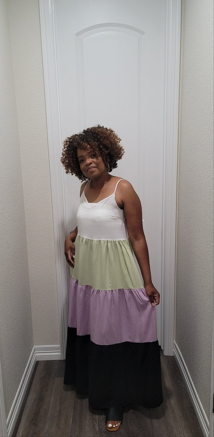 Multi color block spaghetti strep maxi